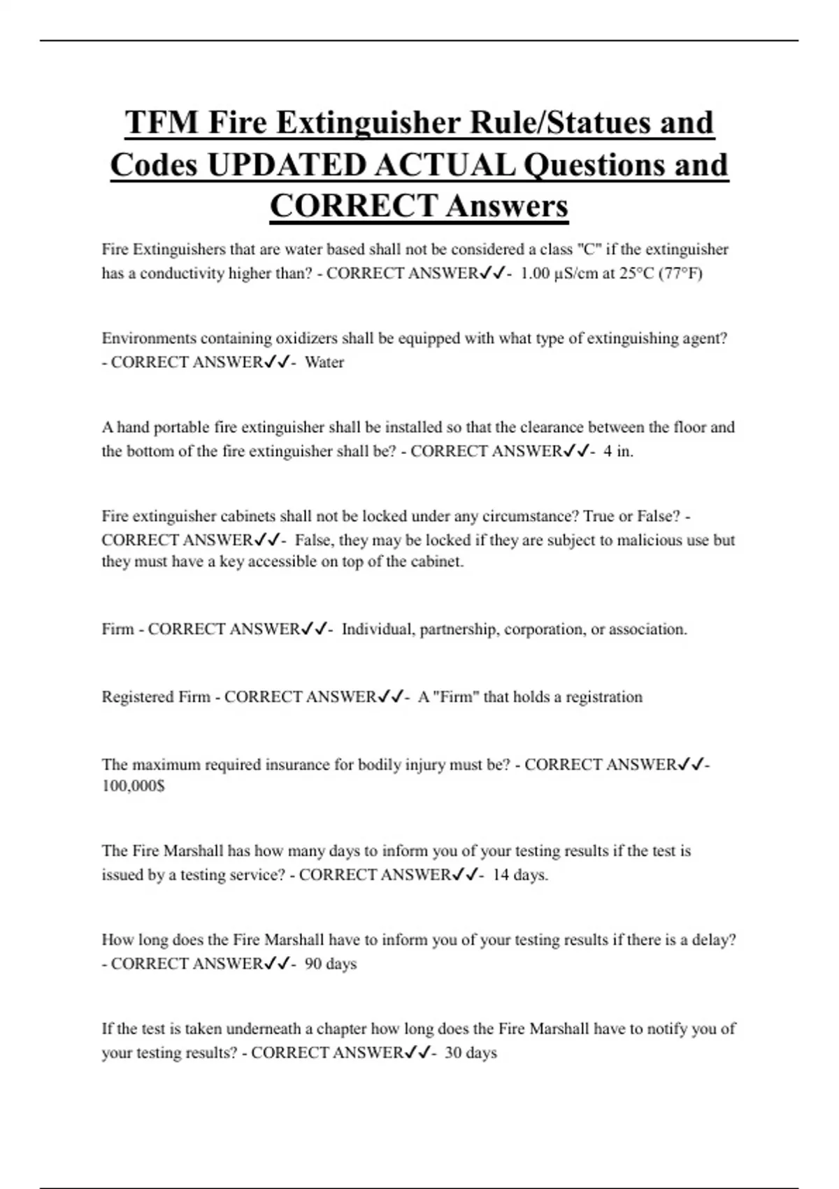 Fire Extinguisher Bundled Exam Questions and CORRECT Answers