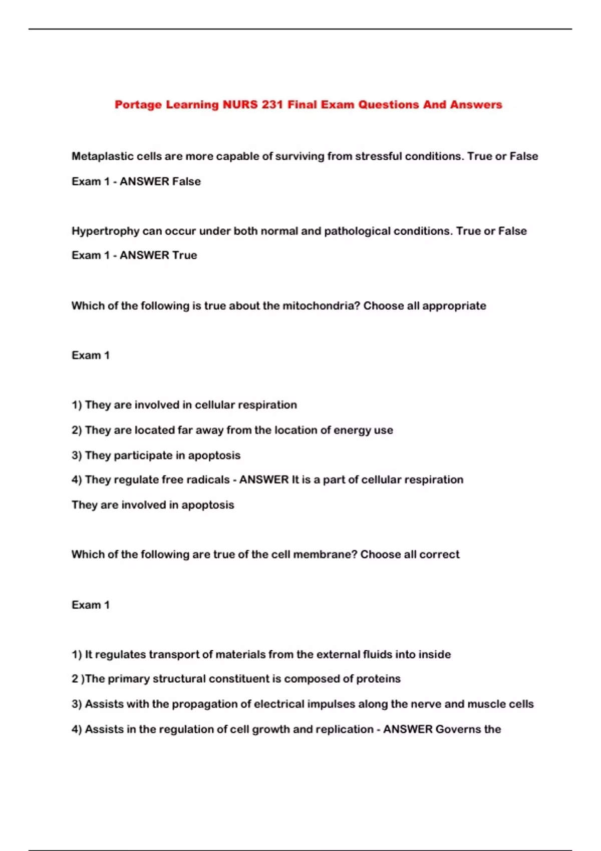 PORTAGE LEARNING PATHOPHYSIOLOGY NURS 231 PACKAGED EXAMS WITH QUESTIONS AND VERIFIED DETAILED ANSWERS