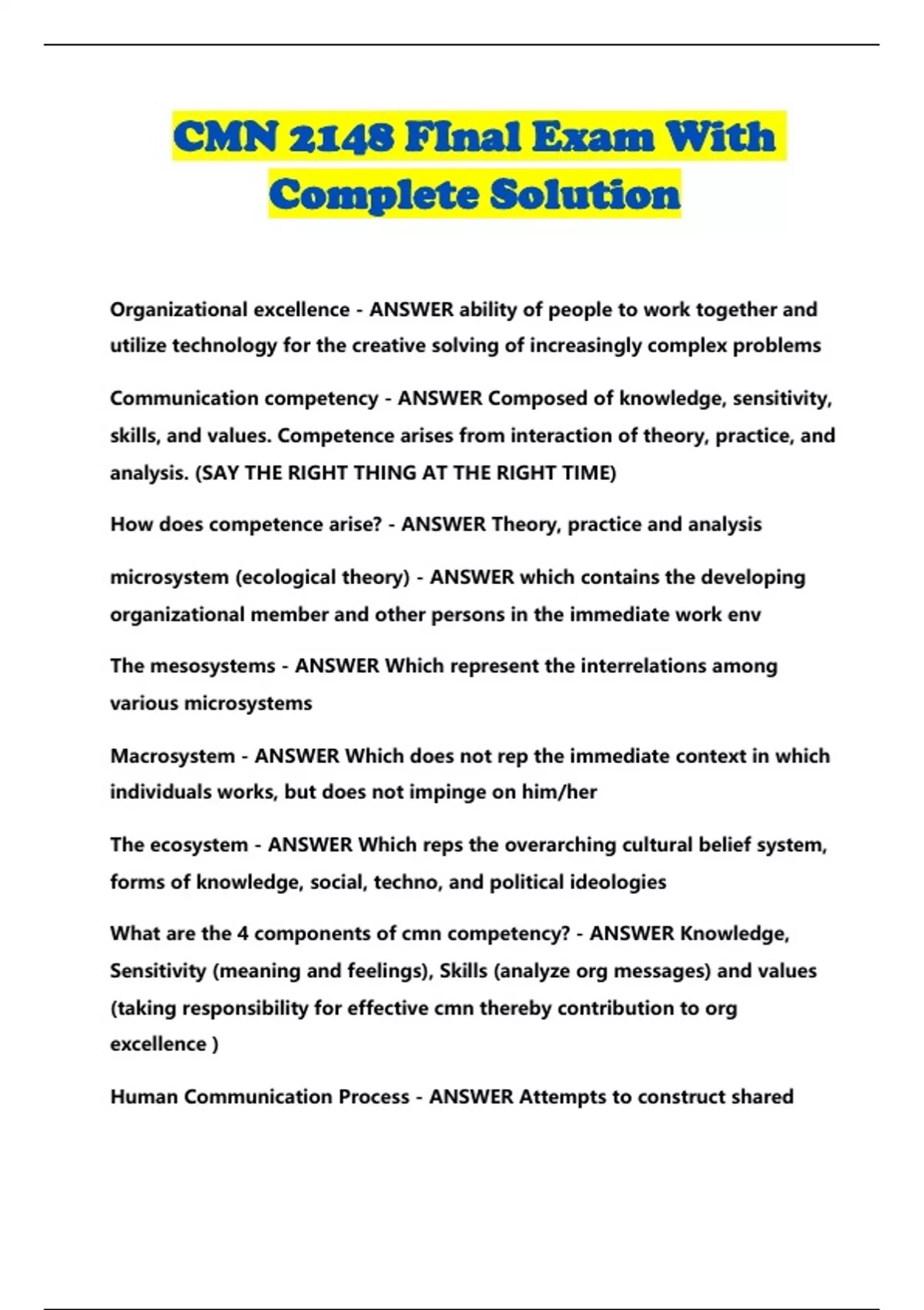 CMN 2148 FInal Exam With Complete Solution