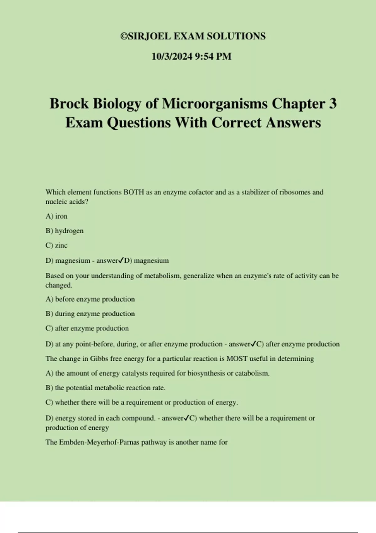 Brock Biology of Microorganisms Chapter 3 Exam Questions With Correct Answers