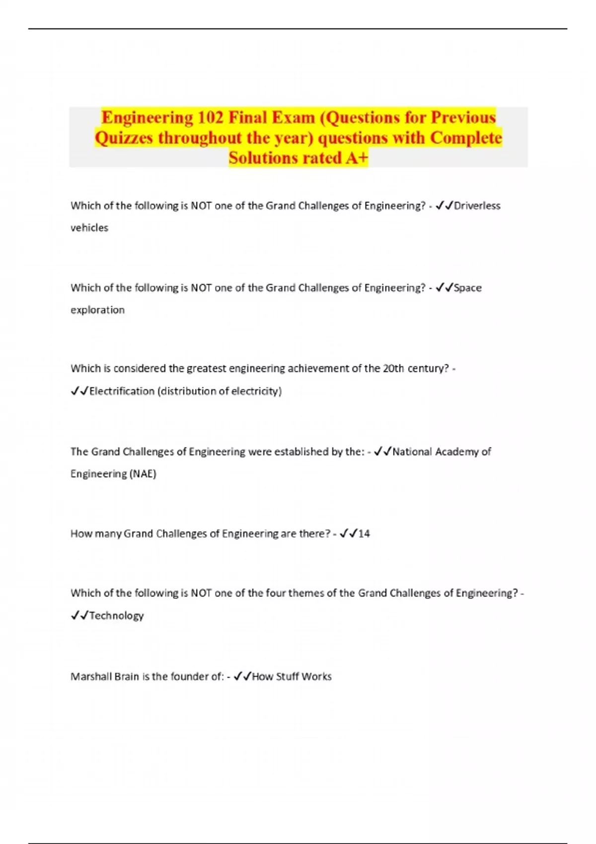 Package deal:::Engineering 102 Exams Compilation