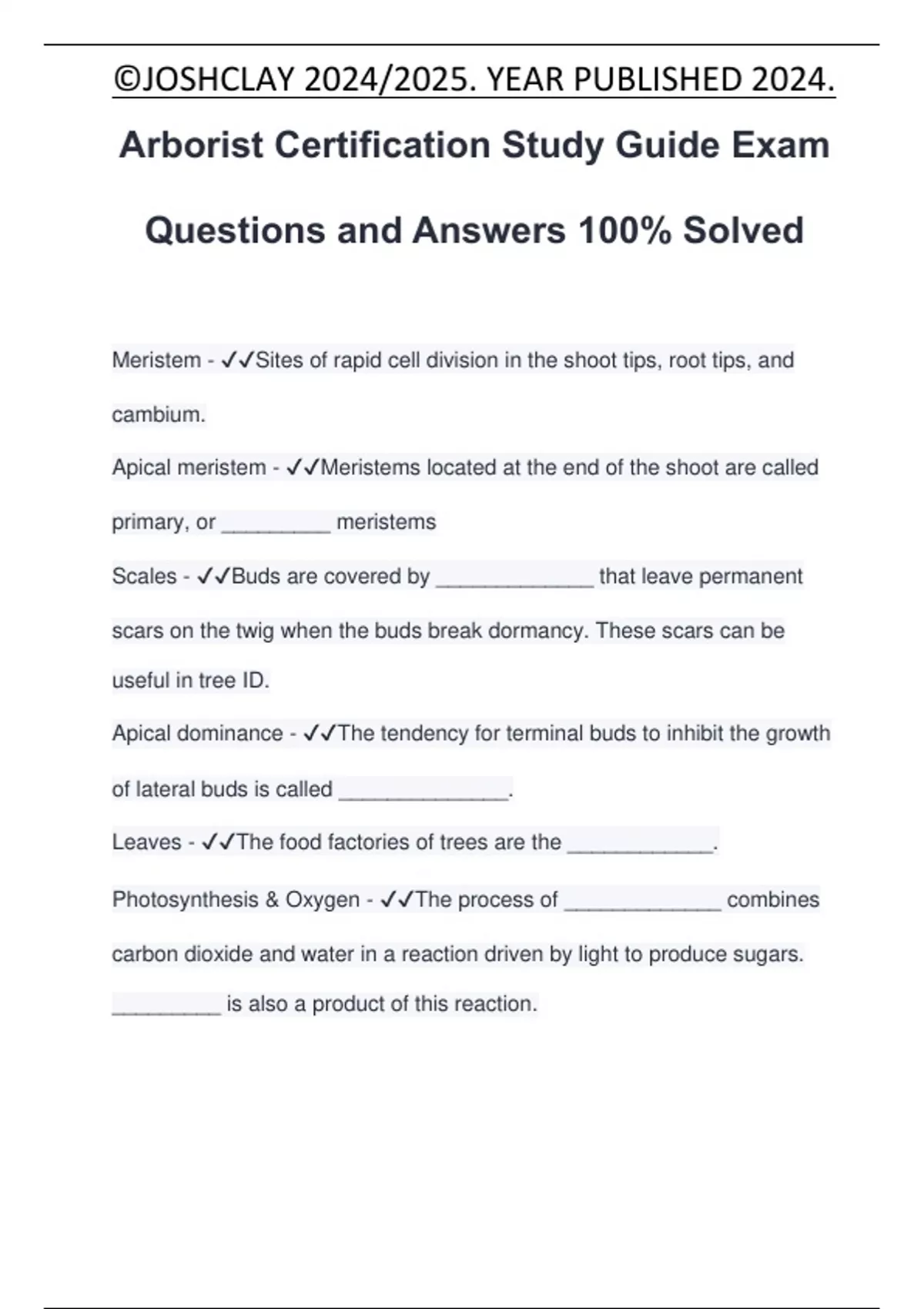 ARBORIST Exam Package Deal Questions and Answers 100% Solved