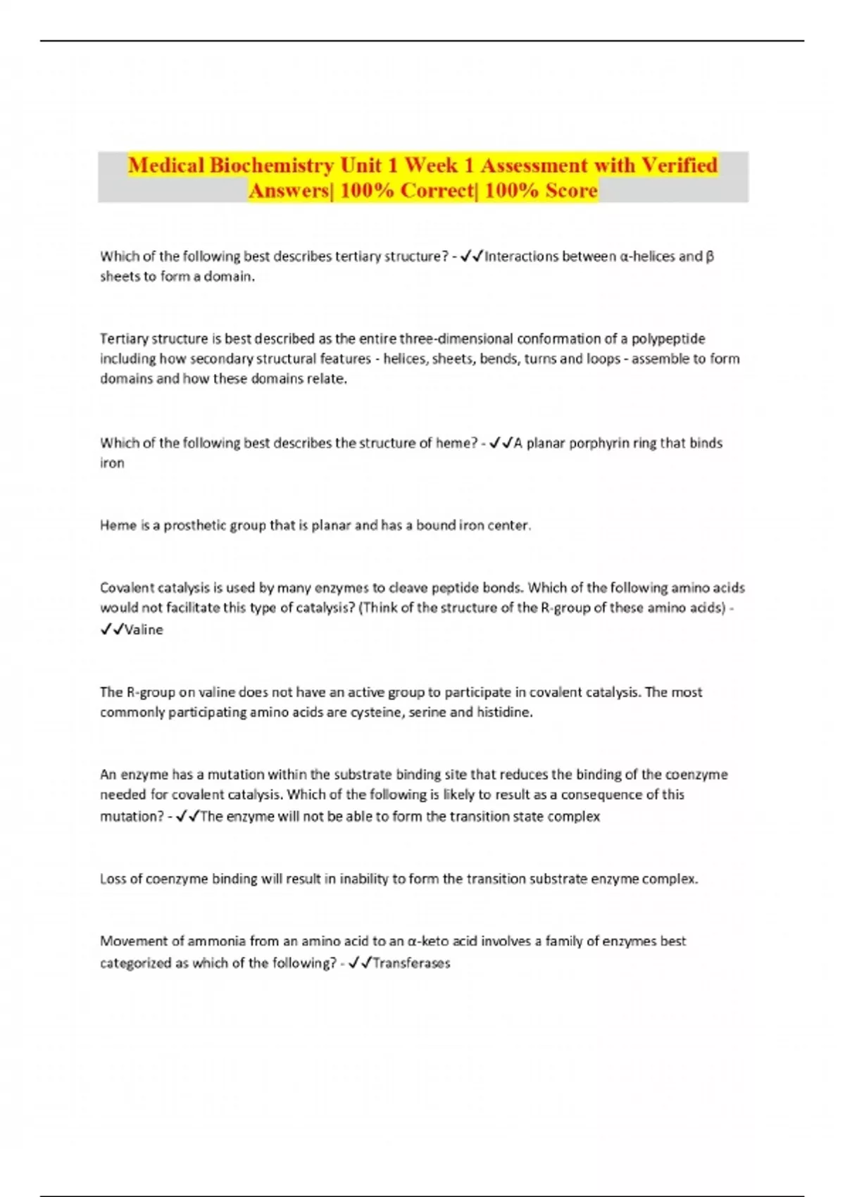 Package deal::UNE medical biochemistry Exams Compilation