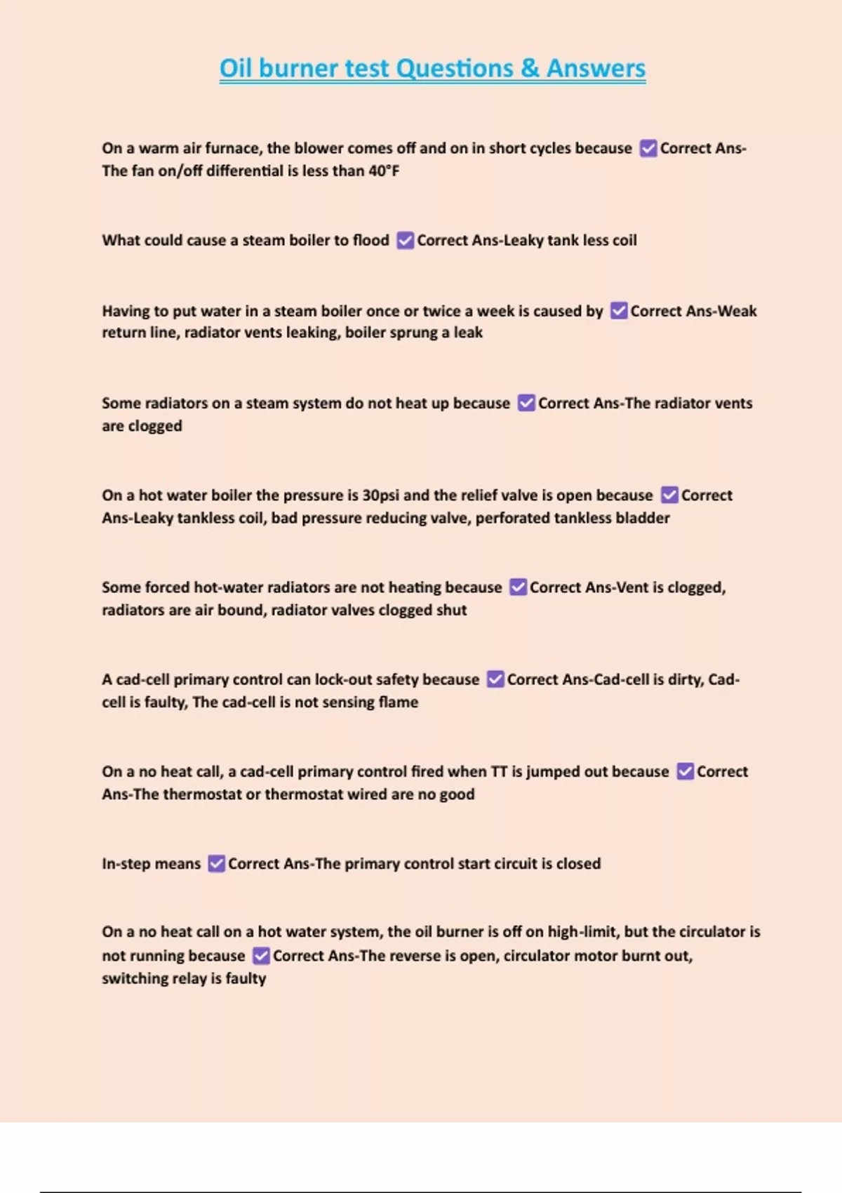 Massachusetts oil burner study guide Qs & As 5 Exam (elaborations) Oil Burner Exam with Complete Solutions 6 Exam (elaborations) Massachusetts Oil burner Practice Exam with Solutions 7 Exam (elaborations) Oil Burner Electrical Wiring and Equipment - Codes – License- Q&A 8 Exam (elaborations) Oil burner License Study Guide (Massachusetts) Qs & A