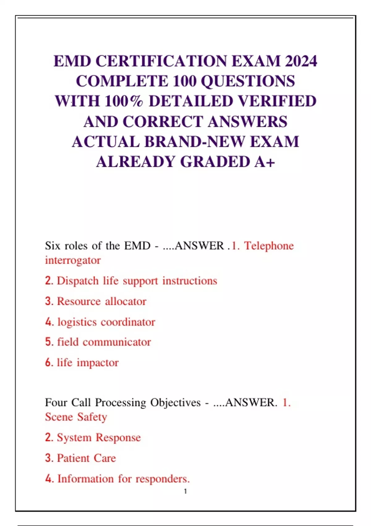 EMD PACKAGE EXAM COMPLETE 700 QUESTIONS WITH 100% DETAILED VERIFIED AND CORRECT ANSWERS ACTUAL BRAND-NEW EXAM ALREADY GRADED A+