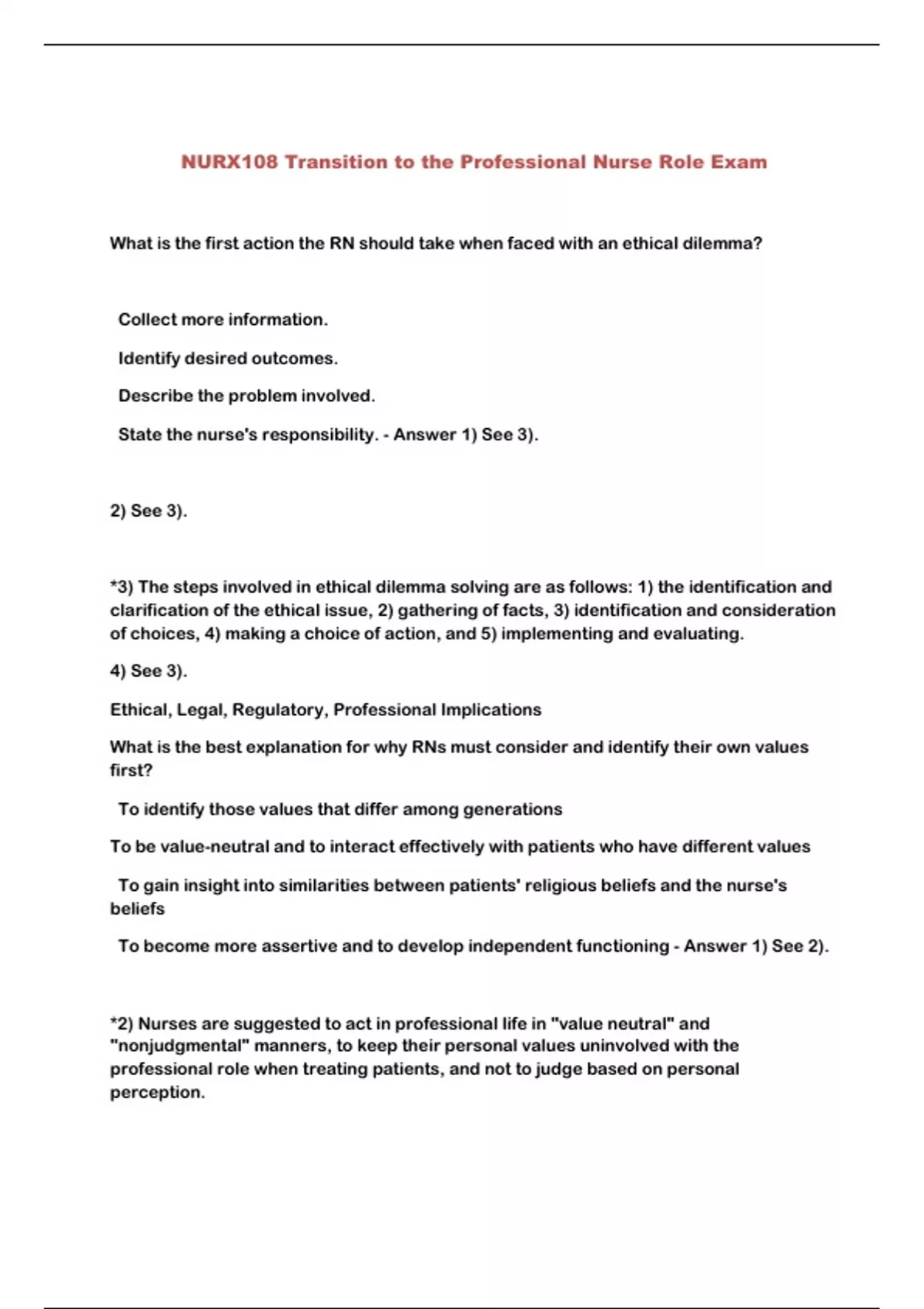 NURX108 Transition to the Professional Nurse Role Exam
