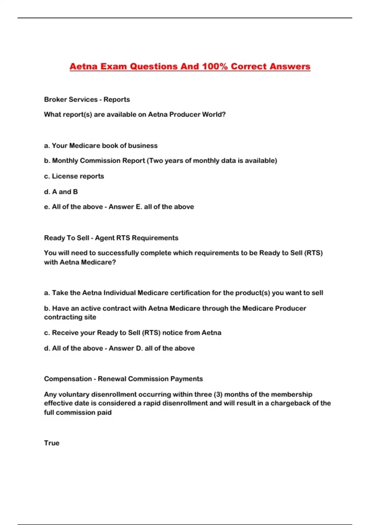 Aetna Exam Questions And 100% Correct Answers