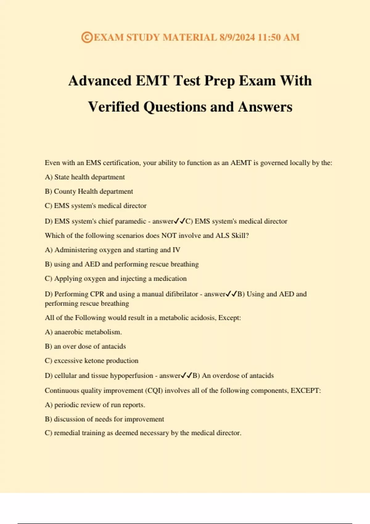 Advanced EMT Test Prep Exam With Verified Questions and Answers
