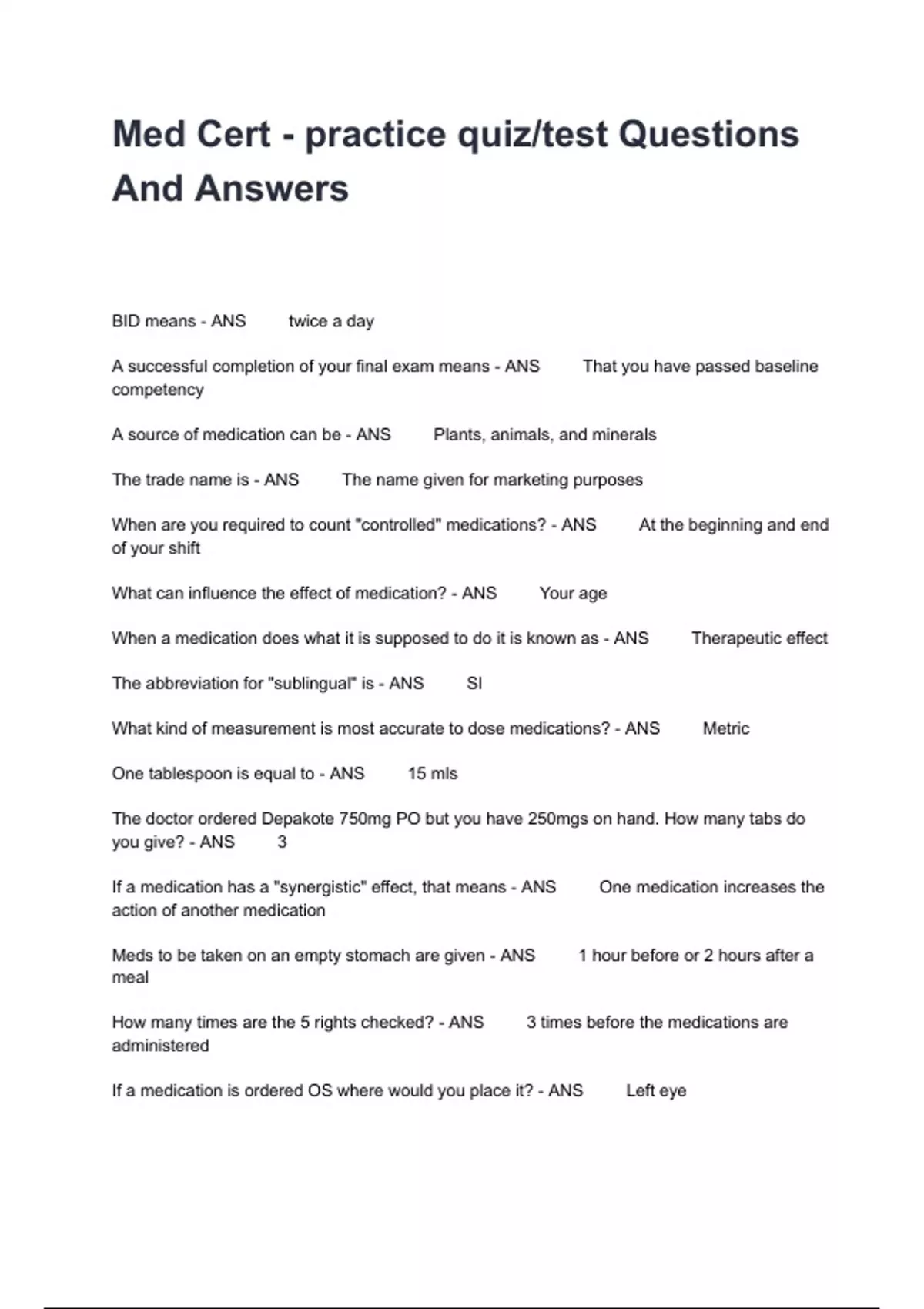 Med Certification Final Test Study Guide QUESTIONS And Answers