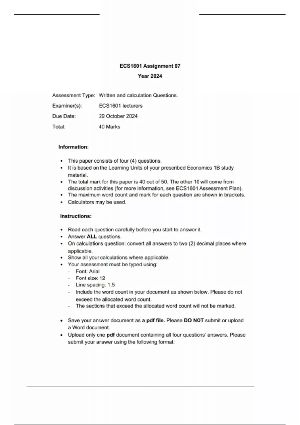 ECS1601 Assignment 07 Semester 2 2024