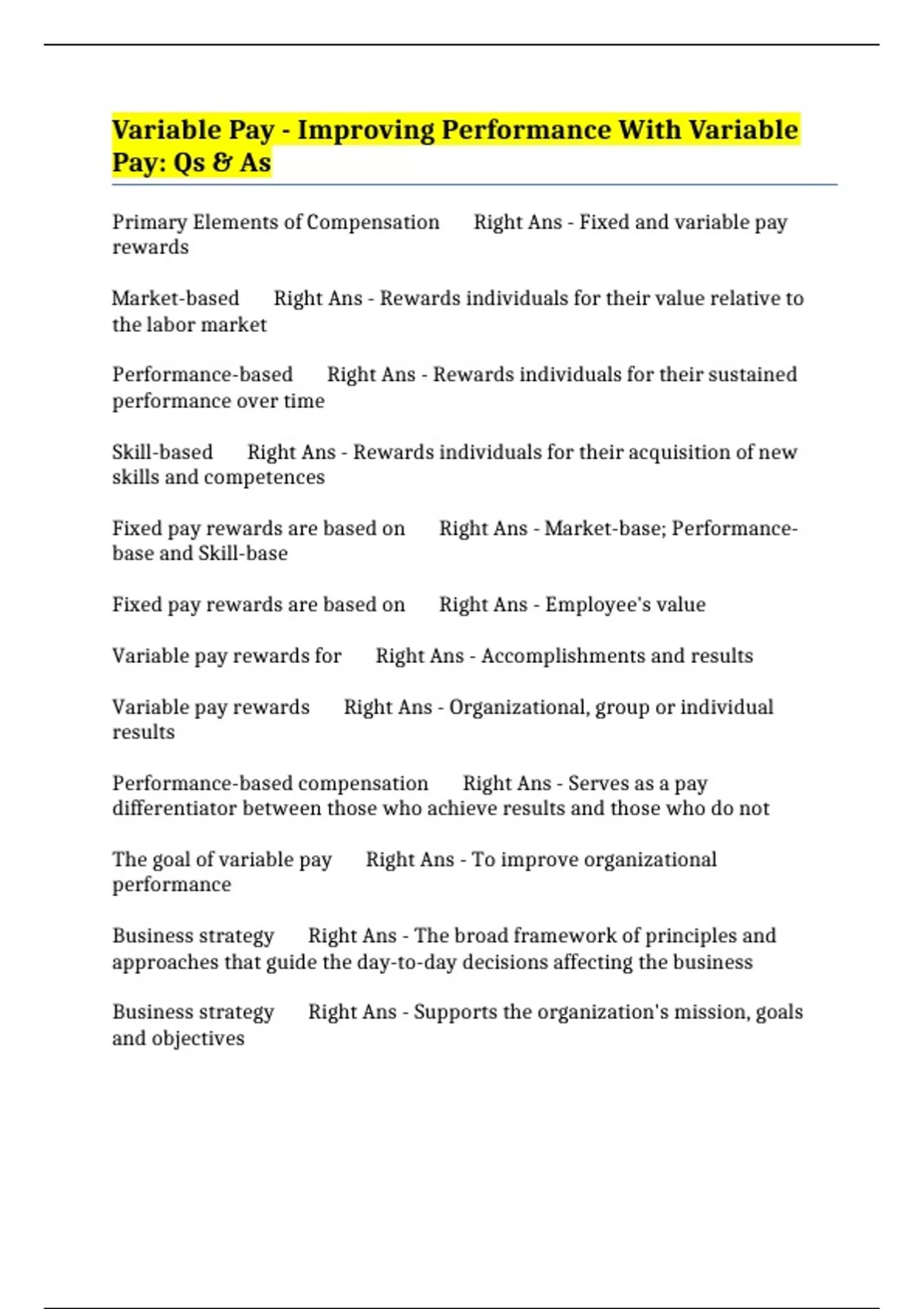 BUNDLE:- TOTAL REWARDS AND VARIABLE PAY EXAMS