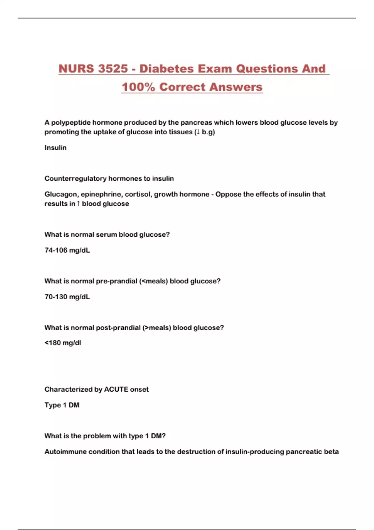 NURS 3525 - Diabetes Exam Questions And 100% Correct Answers