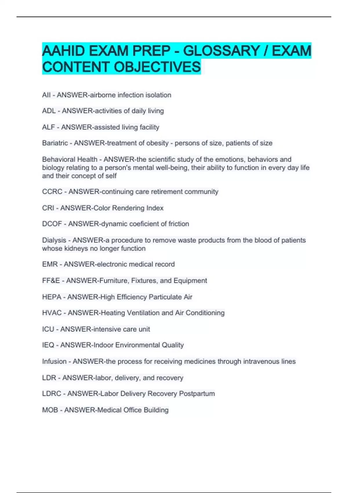 AAHID EXAM PACKAGE DEAL WITH COMPLETE SOLUTIONS!!