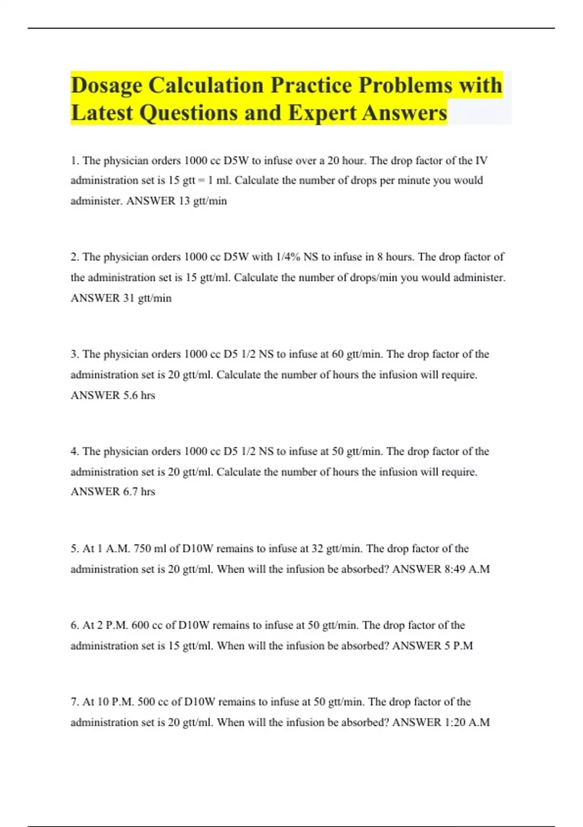 Package deal for Dosage Calculations Final Exam Study Guide with Q and A