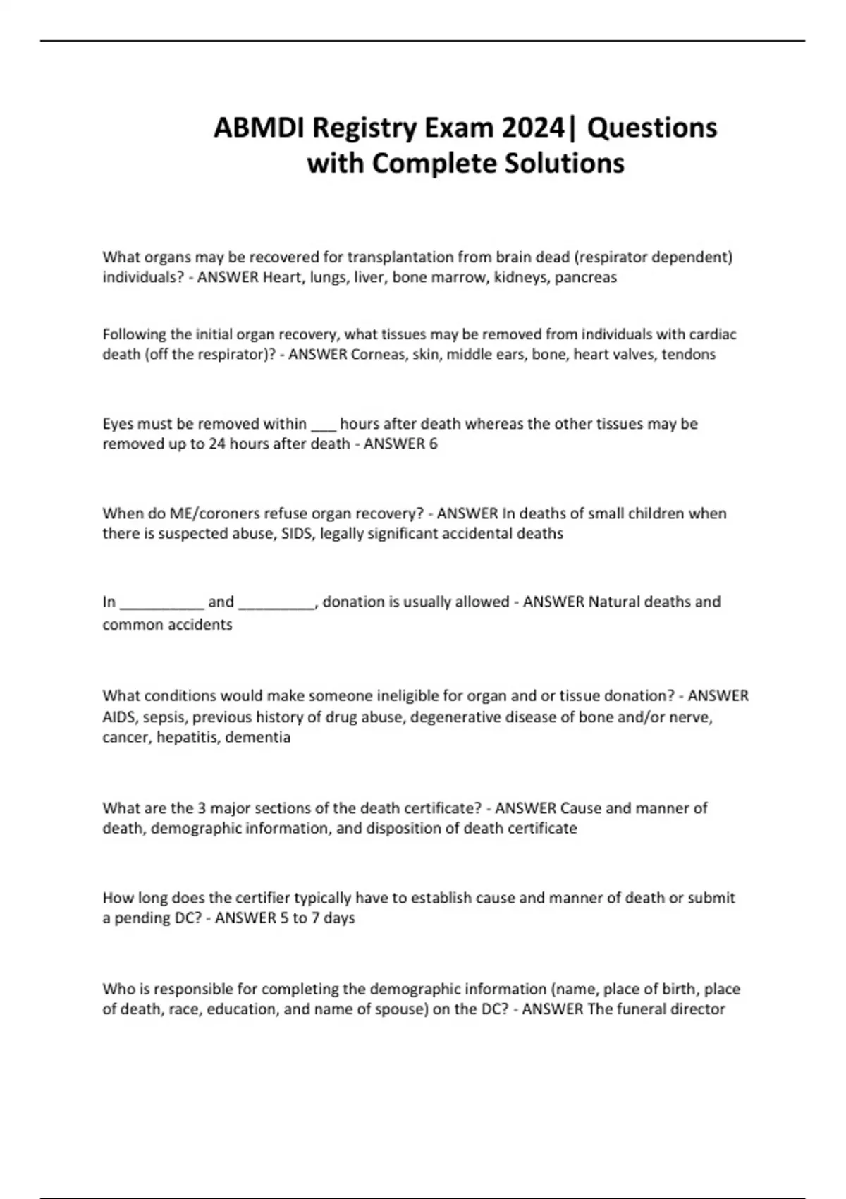 ABMDI Registry Exam 2024| Questions with Complete Solutions