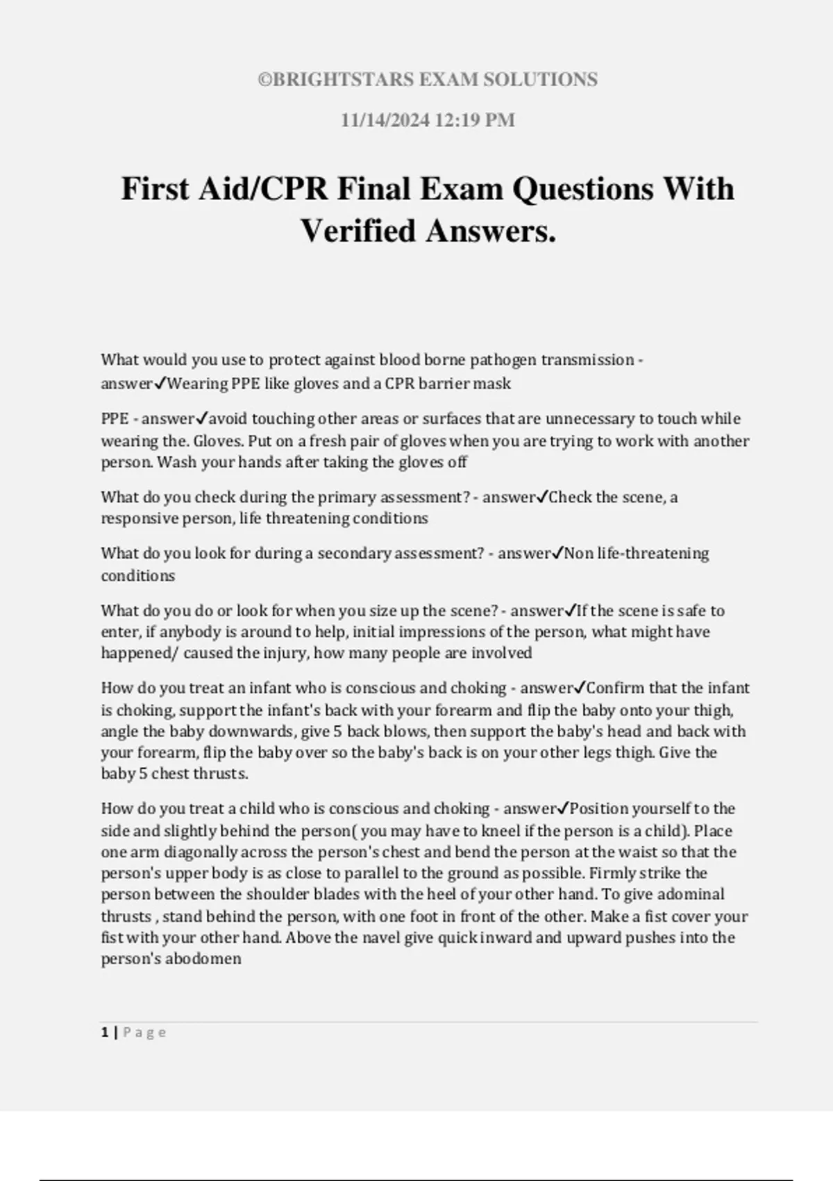 CPR First aid test Questions With Verified Answers.