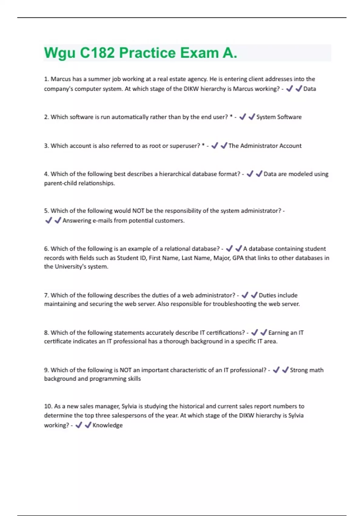 Wgu C182 Practice Exam A Questions And Answers With Verified Solutions
