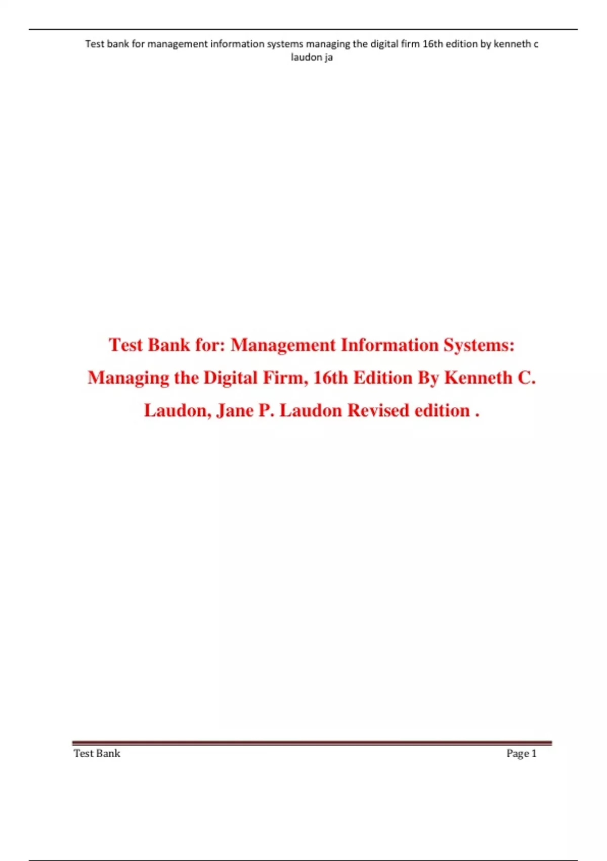 Exam (elaborations) Test Bank for: Management Information Systems: Managing the Digital Firm, 16th Edition By Kenneth C. Laudon, Jane P. Laudon Revised edition 2 Exam (elaborations) TEST BANK For Management Information Systems, 11th Edition by Hossein Bidgoli, Chapters 14 3 Exam (elaborations) TEST BANK For Management Information Systems, 10th Ed