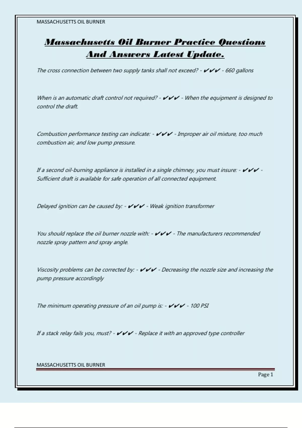 Massachusetts Oil Burner Practice Questions And Answers Latest Update.