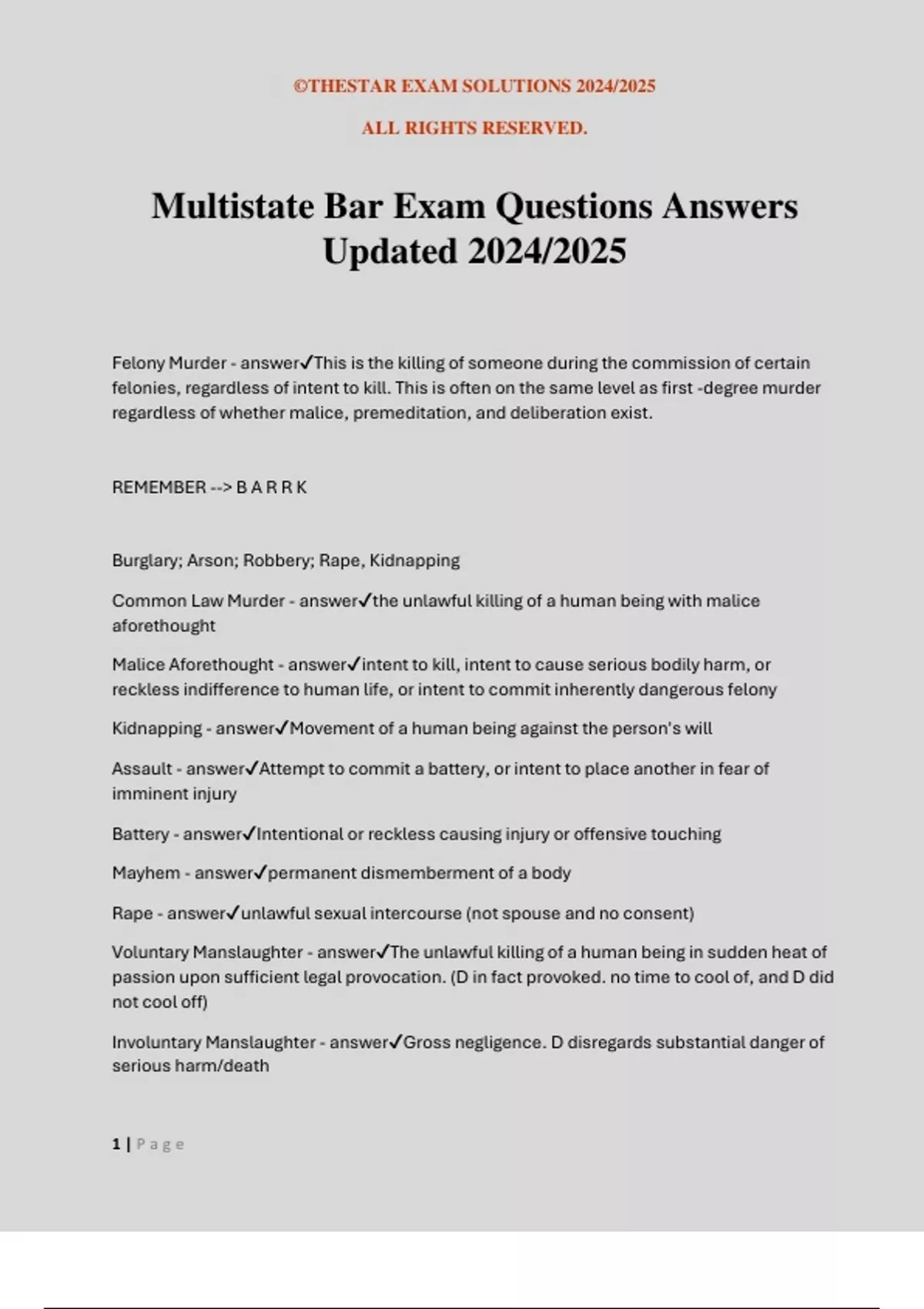 Multistate Bar Exam Questions Answers Updated 2024/2025