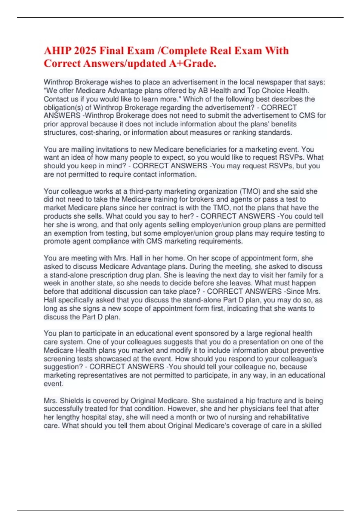 AHIP 2025 Final Exam /Complete Real Exam With Correct Answers/updated A+Grade