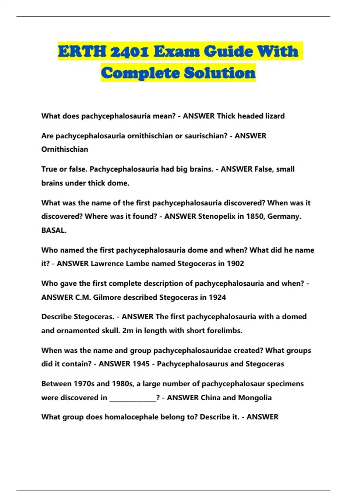 ERTH 2401 BUNDLED EXAMS WITH SOLUTION