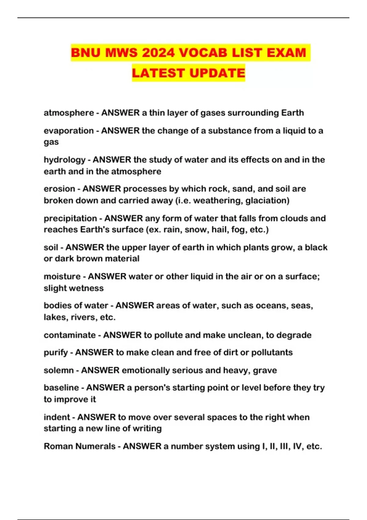 BNU MWS 2024 VOCAB LIST EXAM LATEST UPDATE