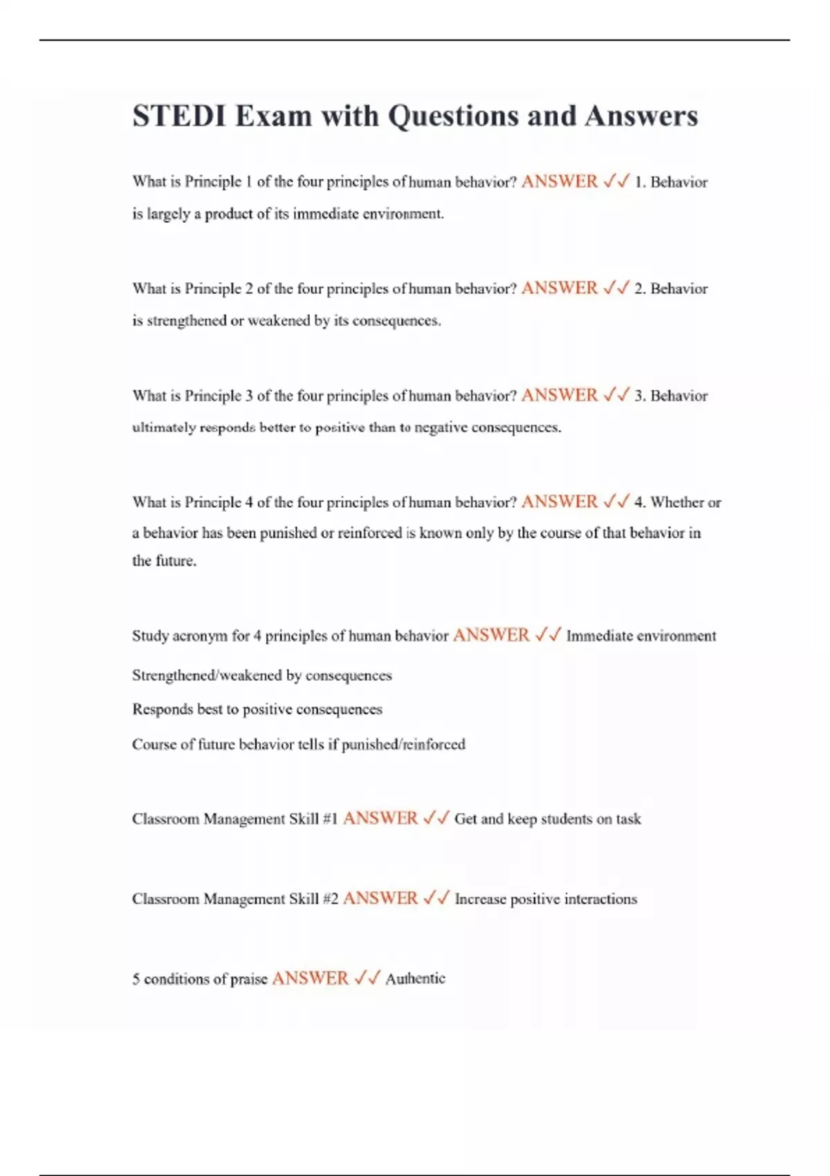 STEDI Exam with Questions and Answers STEDI Training Notes with Questions and Answers STEDI Final Review with Questions and Answers