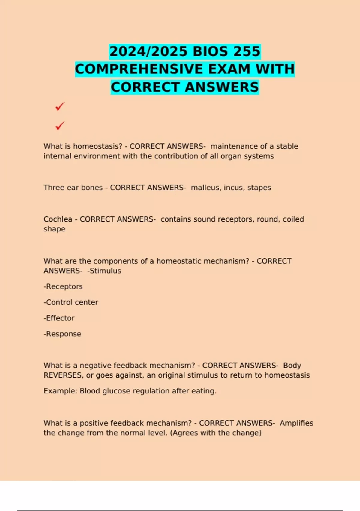2024/2025 BIO 255 LAB WEEK 5 TEST EXAM WITH CORRECT ANSWERS 2024/2025 BIO 255 EXAM 1 WITH CORRECT ANSWERS 2024/2025 BIOS 255 EXAM 2 WITH CORRECT ANSWERS 2024/2025 BIOS 255 (MIDTERM/FINALS) EXAM WITH CORRECT ANSWERS 2024/2025 BIOS 255 WEEK 2 - THE CARDIOVASCULAR SYSTEM (HEART) EXAM WITH CORRECT ANSWERS 2024/2025 BIOS 255 FINAL EXAM WITH CORRECT ANSW