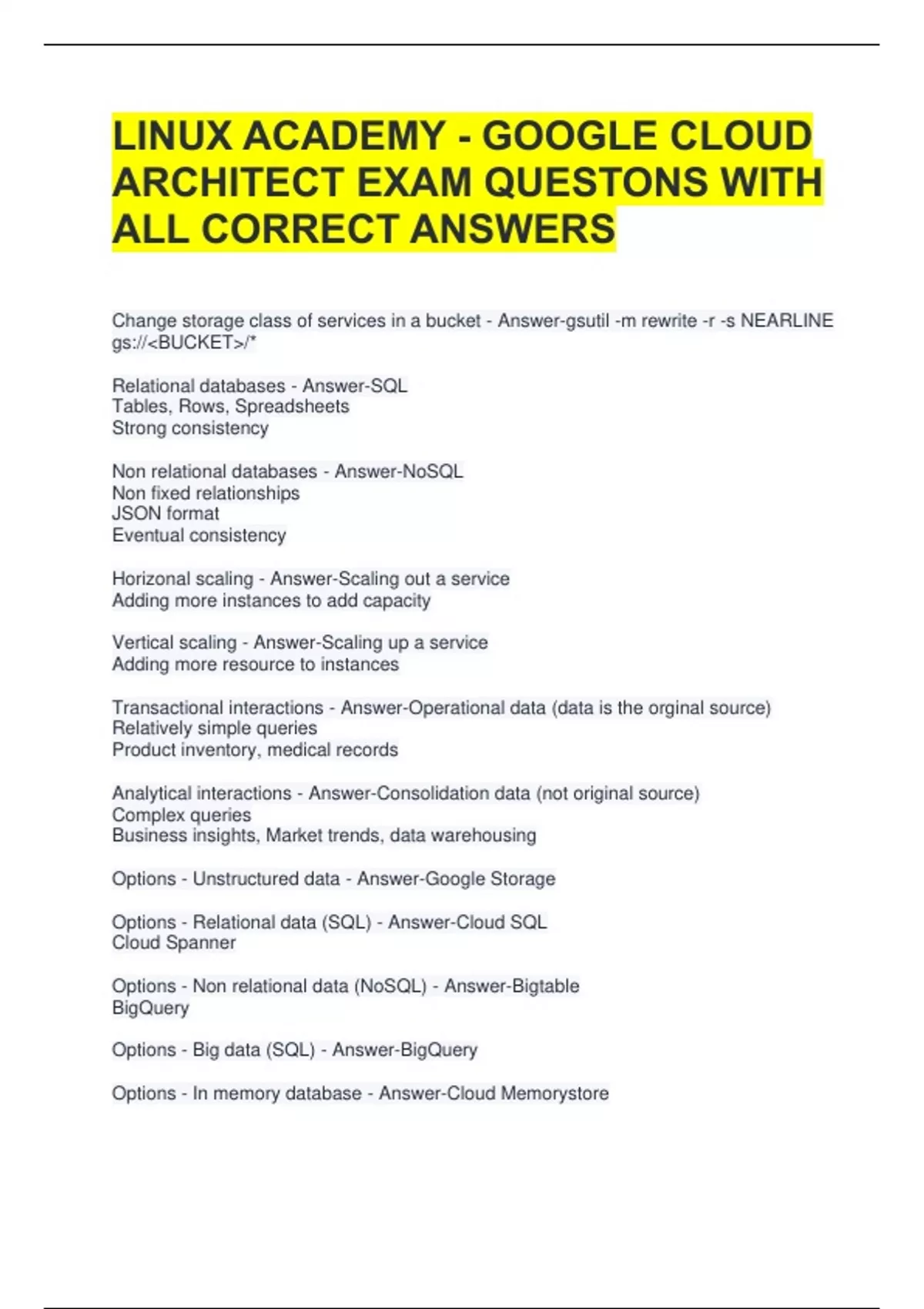GOOGLE CLOUD ARCHITECT EXAM - STUDY SET QUESTIONS WITH ALL CORRECT ANSWERS 2 Exam (elaborations) GOOGLE CLOUD ARCHITECT NOTES EXAM QUESTIONS AND ANSWERS 3 Exam (elaborations) GOOGLE CLOUD PROFESSIONAL CLOUD ARCHITECT 01 EXAM WITH COMPLETE SOLUTIONS 4 Exam (elaborations) LINUX ACADEMY - GOOGLE CLOUD ARCHITECT EXAM QUESTONS WITH ALL CORRECT ANSWER