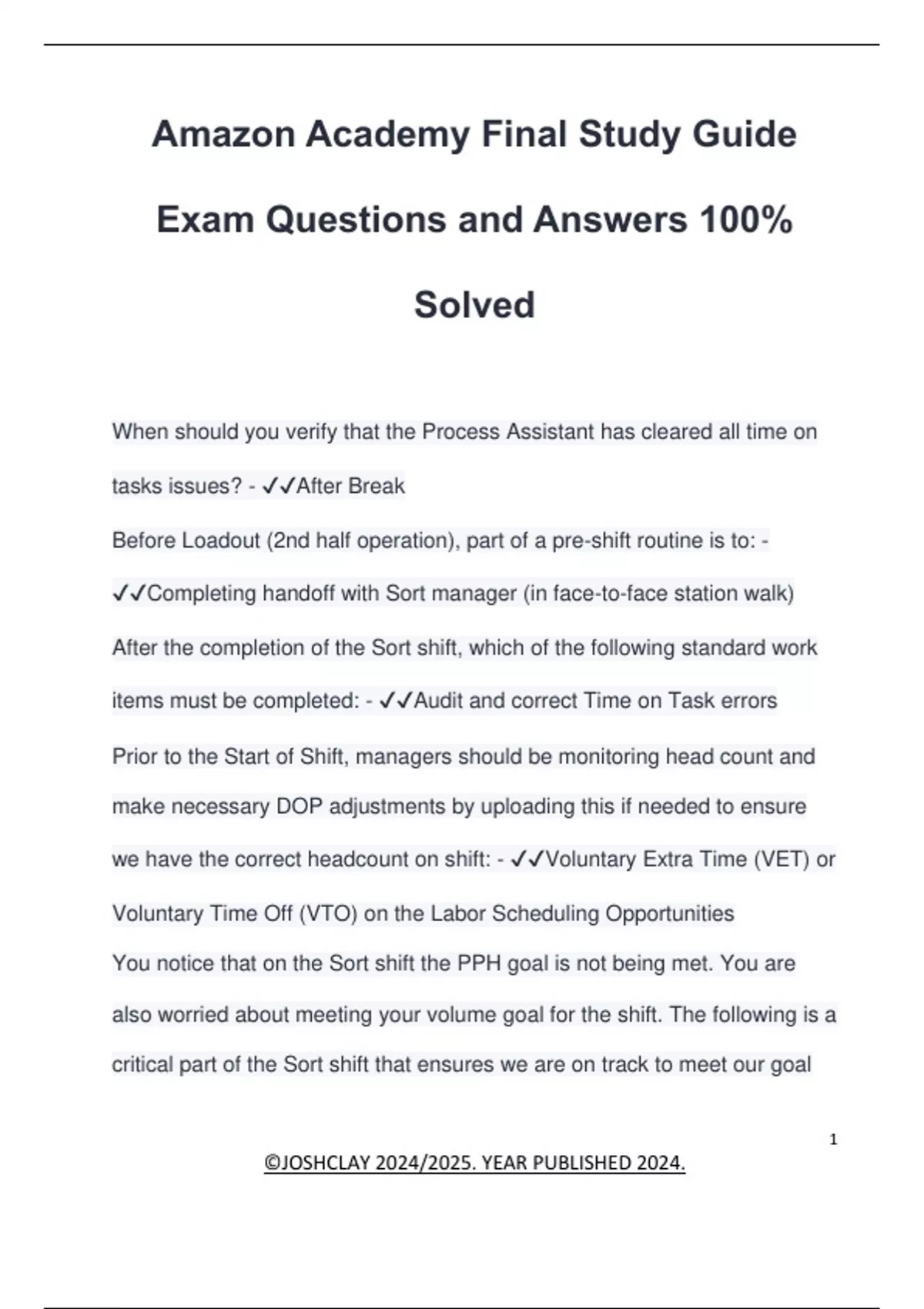 Amazon Academy Final Study Guide Exam Questions and Answers 100% Solved