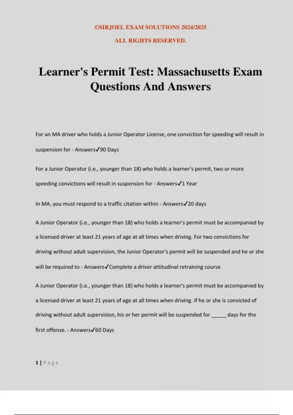 Learner's Permit Bundled Exam Questions With Verified Solutions