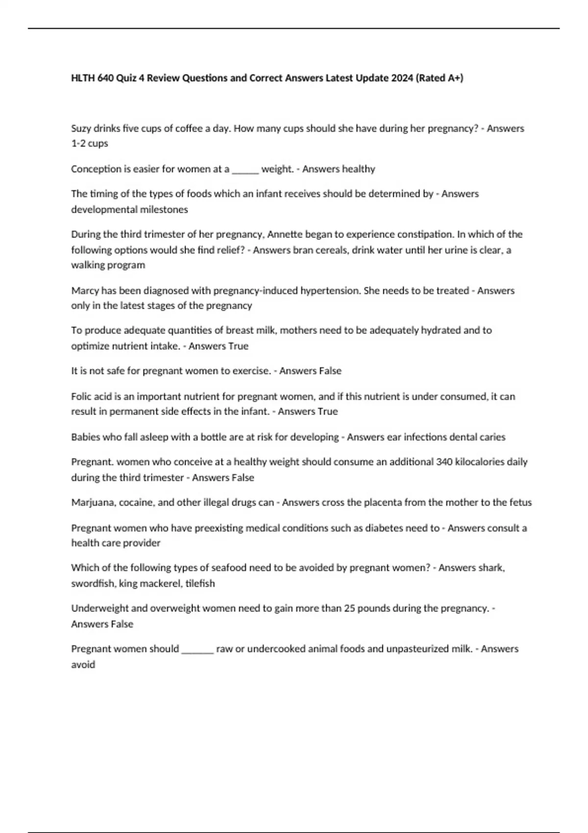 HLTH 640 Quiz 4 Review Questions and Correct Answers Latest Update 2024 (Rated A+)