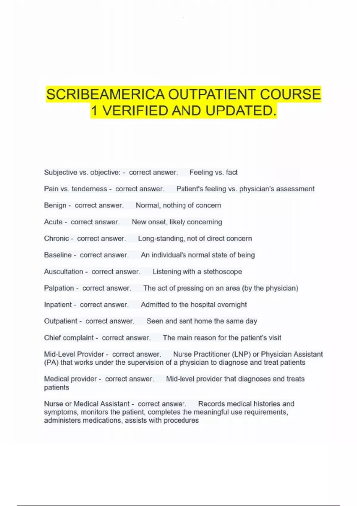 Scribeamerica OP Final Questions And Answers Upgraded 2025.SCRIBEAMERICA OUTPATIENT COURSE 1 VERIFIED AND UPDATED.Scribeamerica: Outpatient Pre-Clinical Training Questions And Answers Latest Top Score.Scribeamerica Outpatient Course 3 Verified And Updated.