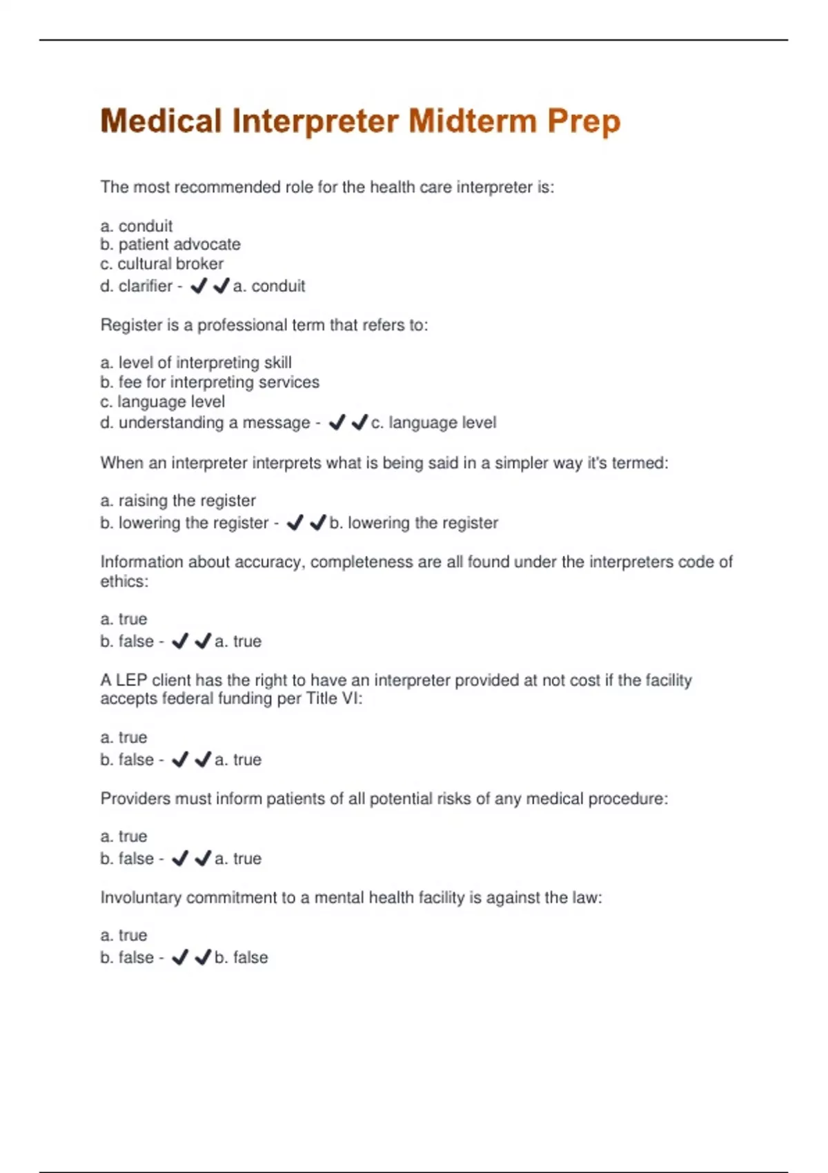 Medical Interpreter Midterm Prep Questions And Answers Rated A+ New Update Assured Satisfaction