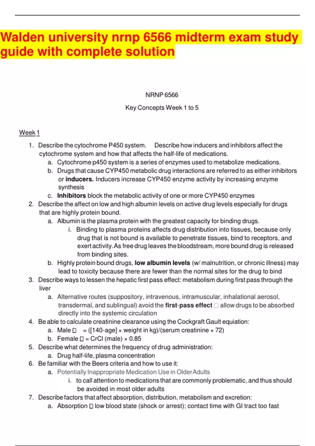 Walden university nrnp 6566 midterm exam study guide with complete solution.