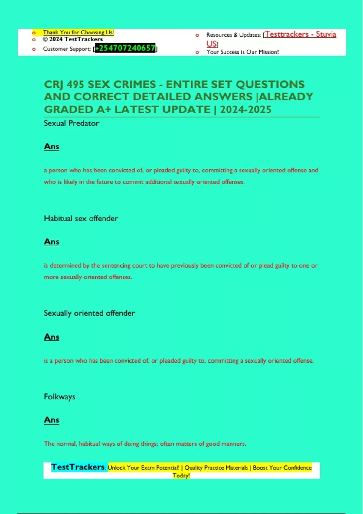 CRJ 495 SEX CRIMES - ENTIRE SET QUESTIONS AND CORRECT DETAILED ANSWERS |ALREADY GRADED A+ LATEST UPDATE |