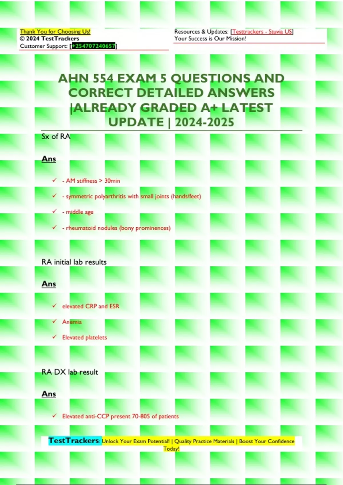 AHN 554 EXAMS QUESTIONS AND CORRECT DETAILED ANSWERS |ALREADY GRADED A+ LATEST UPDATE |