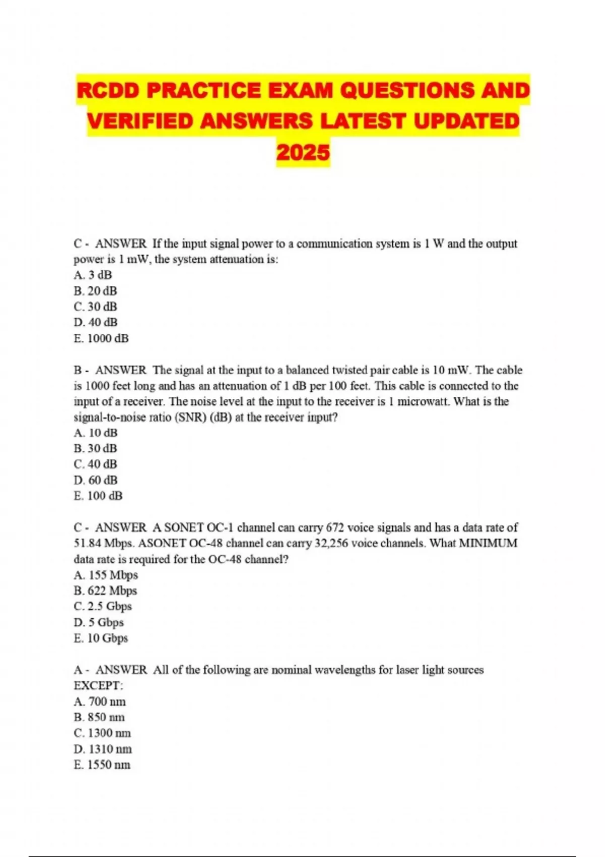 ALL RCDD PACKAGED EXAMS: QUESTIONS AND 100% VERIFIED ANSWERS LATEST UPDATED...