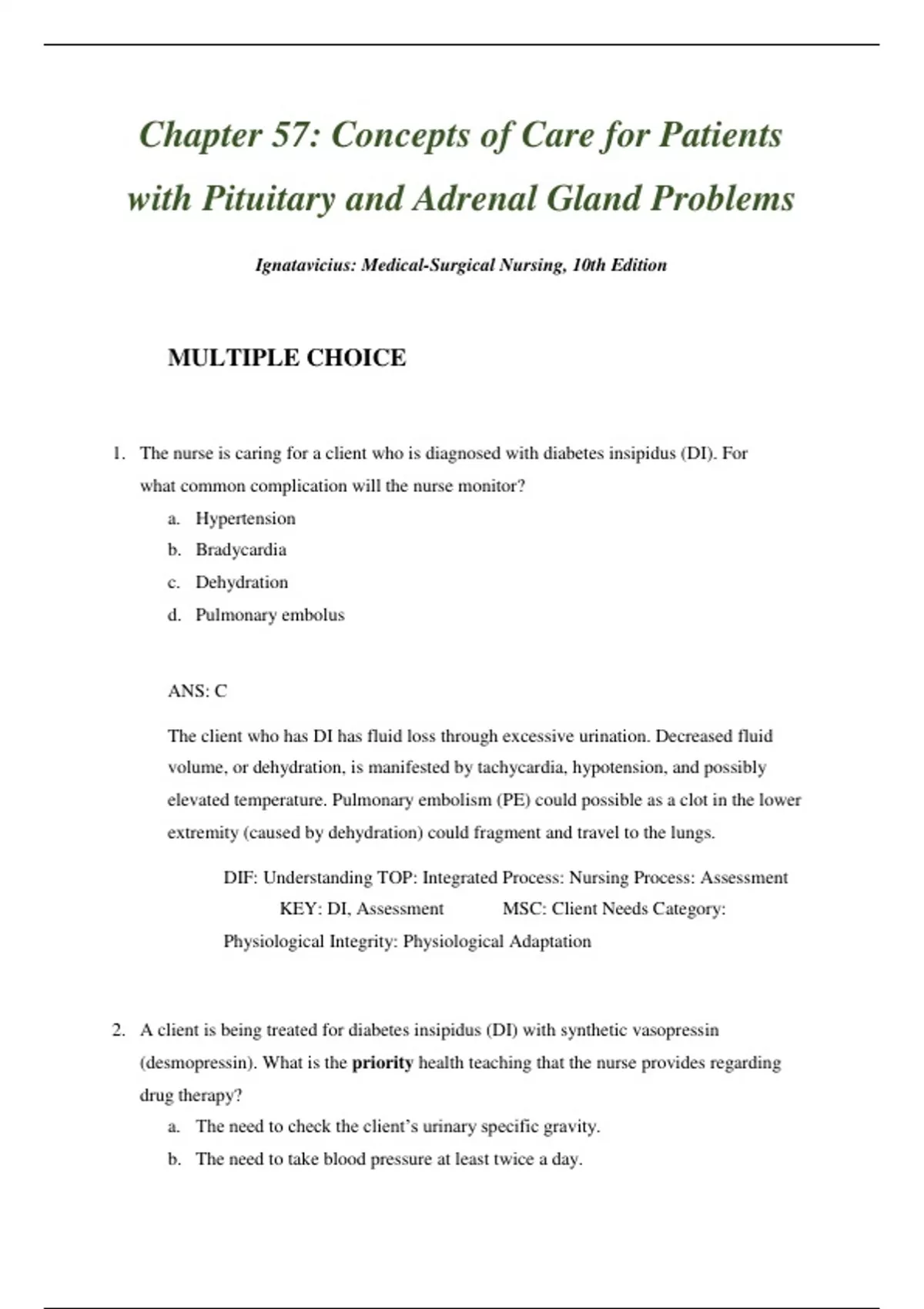 Test bank Medical Surgical Nursing Concepts for Interprofessional Collaborative Care 10th Edition Chapters 56-60