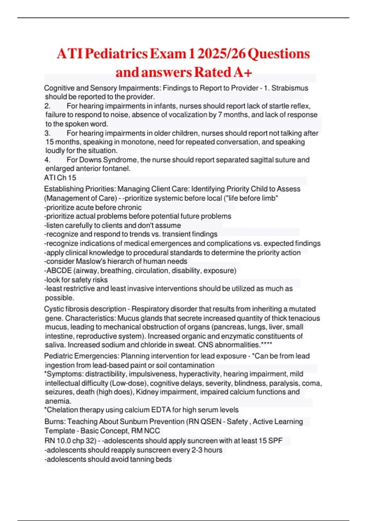 Exam (elaborations) ATI Pediatrics Exam 1 2025/26 Questions and answers Rated A+ 2 Exam (elaborations) ATI Pediatrics Exam 2 2025/26 With complete solution Newest 3 Exam (elaborations) ATI Pediatrics Exam 3 2025/26 Questions and answers Updated Newest 4 Exam (elaborations) ATI Pediatrics Exam 4 2025/26 With complete solution Guaranteed success