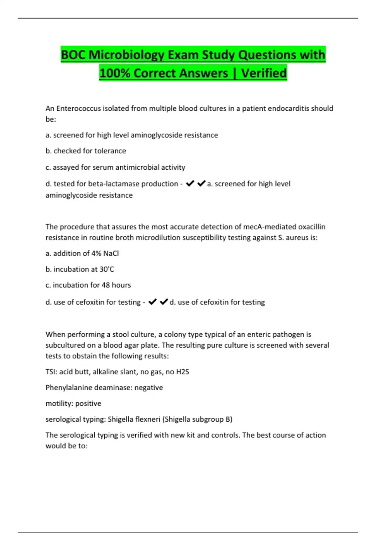 BOC Microbiology Test Study -Questions with 100% Correct Answers | Verifie