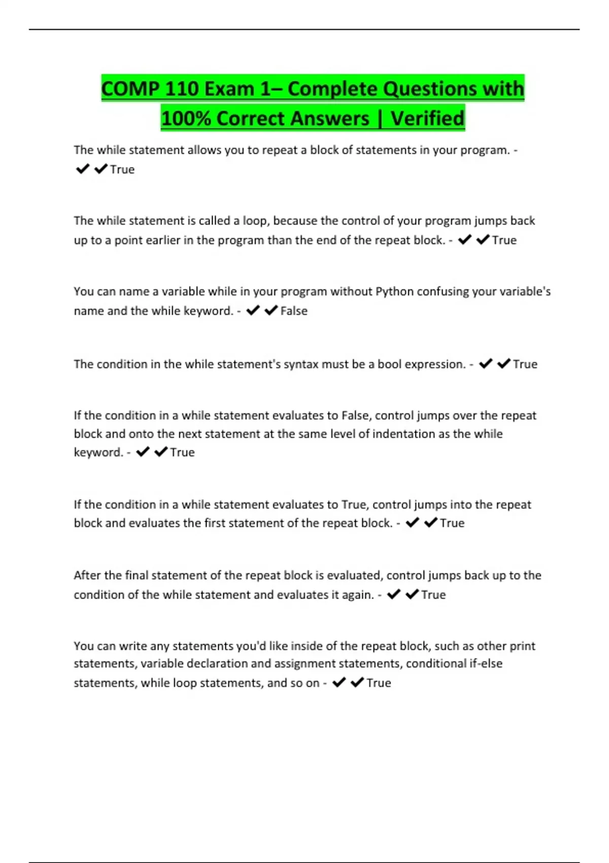 COMP 110 EXAMS BUNDLE |Questions Solved 100% Correct| Verified Solutions-Newest update 2025