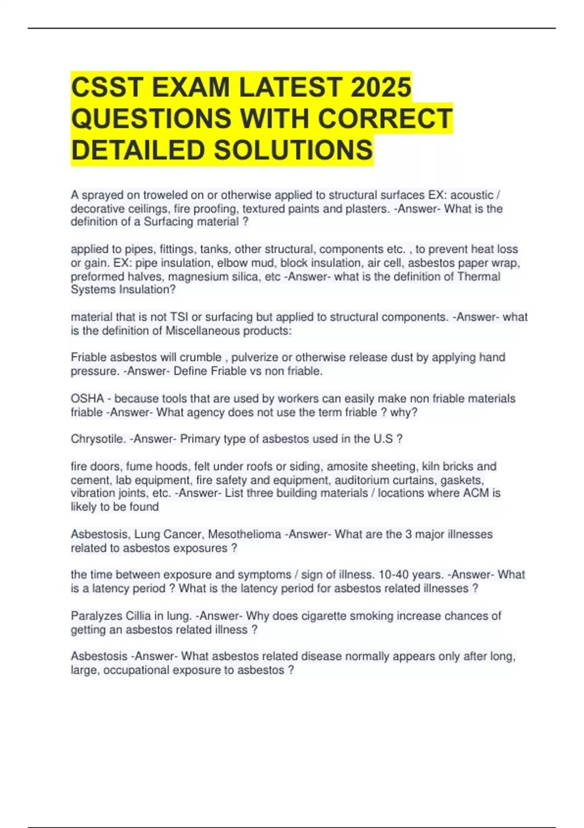 CSST EXAM LATEST 2025 QUESTIONS WITH CORRECT DETAILED SOLUTIONS 2 Exam (elaborations) CSST EXAM REPORTED QUESTIONS WITH ALL CORRECT ANSWERS 3 Exam (elaborations) CSST EXAM CERTIFICATION EXAM LATEST 2024 QUESTIONS WITH 100% SOLVED SOLUTIONS 4 Exam (elaborations) CSST EXAM LATEST QUESTIONS WITH CORRECT ANSWERS 5 Exam (elaborations) CSST