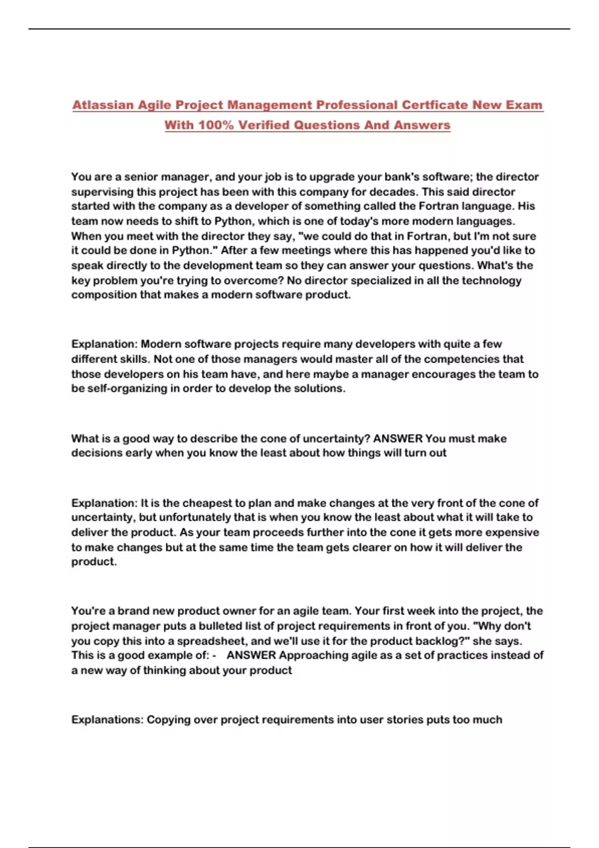 Atlassian Agile Project Management Professional Certficate New Exam With 100% Verified Questions And Answers