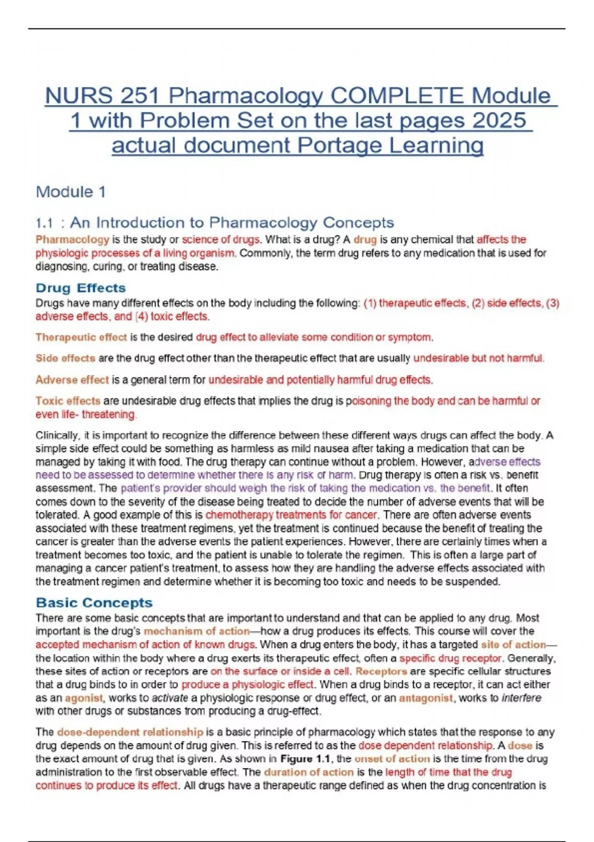 COMBINED MODULES FOR Portage Learning NURS 251 Pharmacology MODULE 1-8 2025 VERIFIED SOLUTIONS
