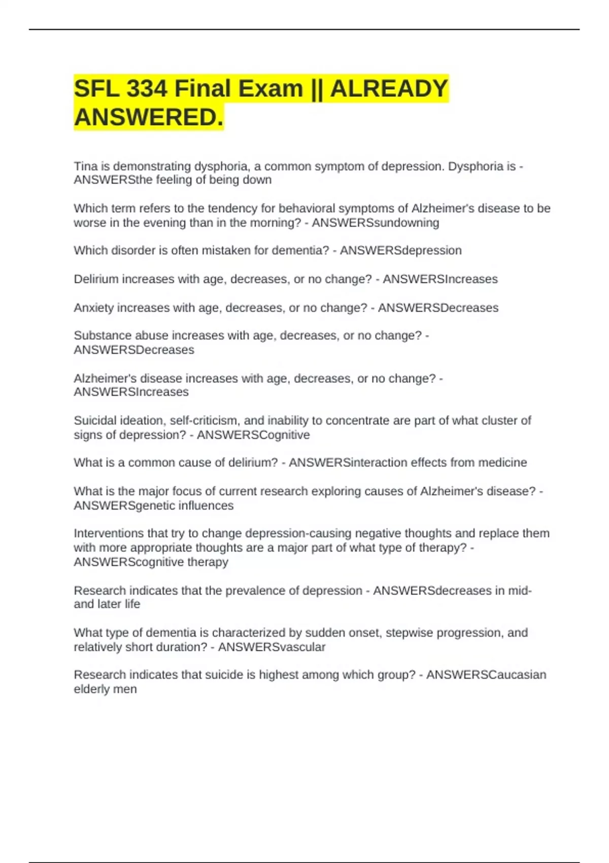 SFL 334 EXAM PACKAGE DEAL WITH COMPLETE SOLUTIONS!!