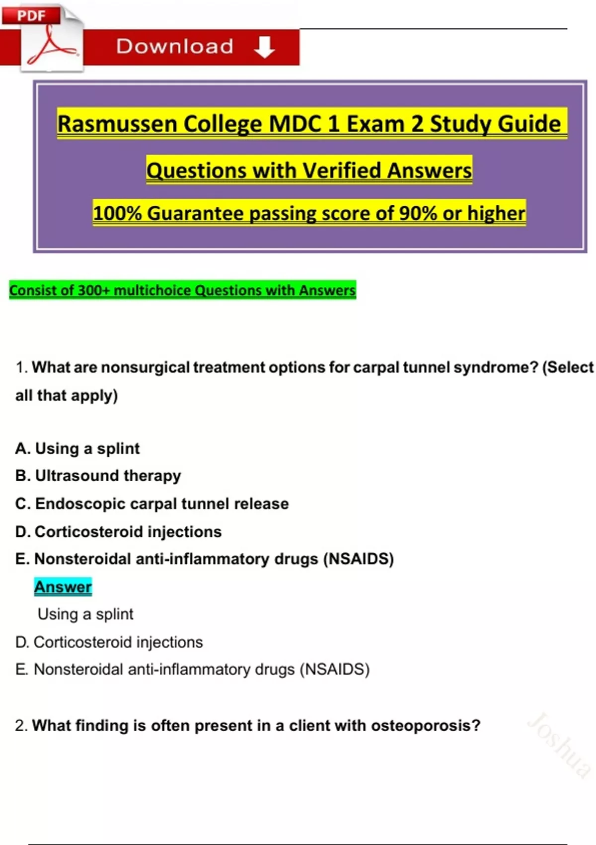 NUR 2356 / NUR2356: Study Guide MDC 1 Exam 1 + Study Guide MDC 1 Exam 2: ALL IN ONE (2025 / 2026) Questions with Revised Answers - Rasmussen College