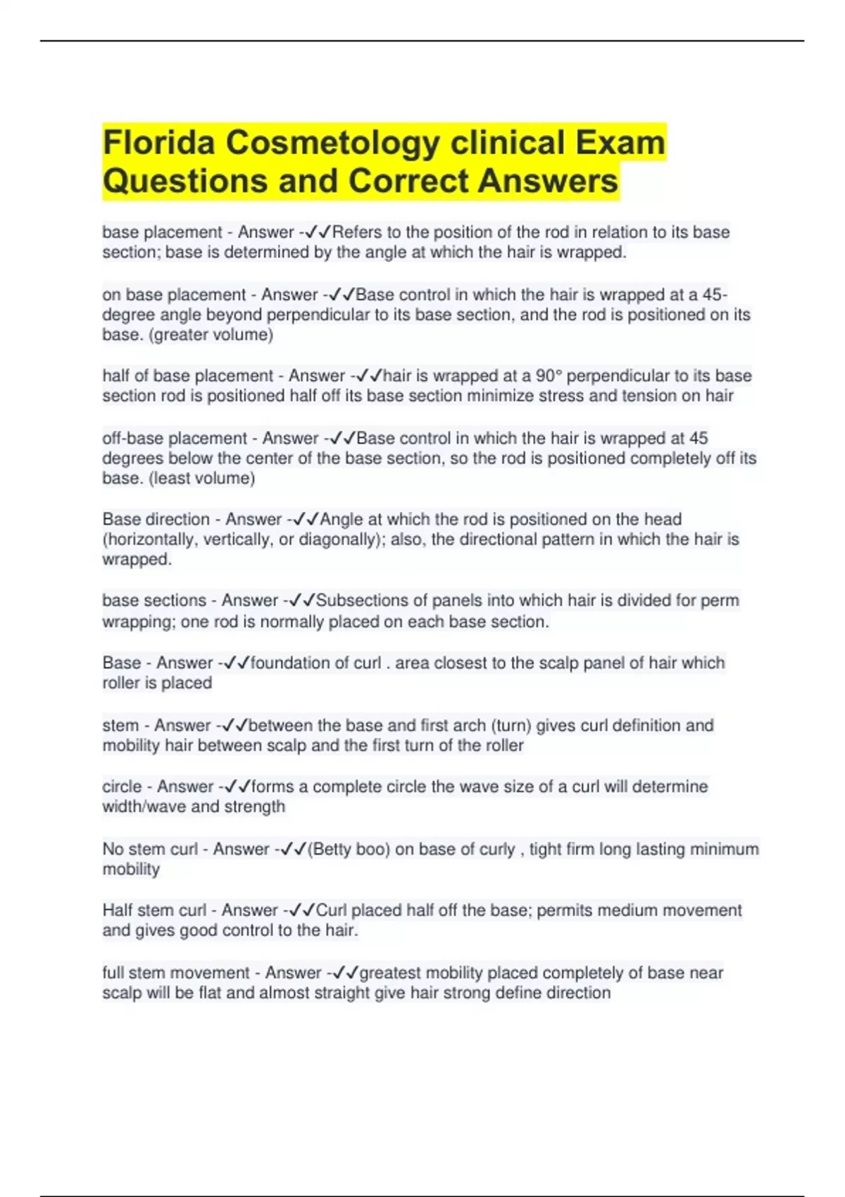 Cosmetology Florida State Board Clinical Exam Review With Verified Answers