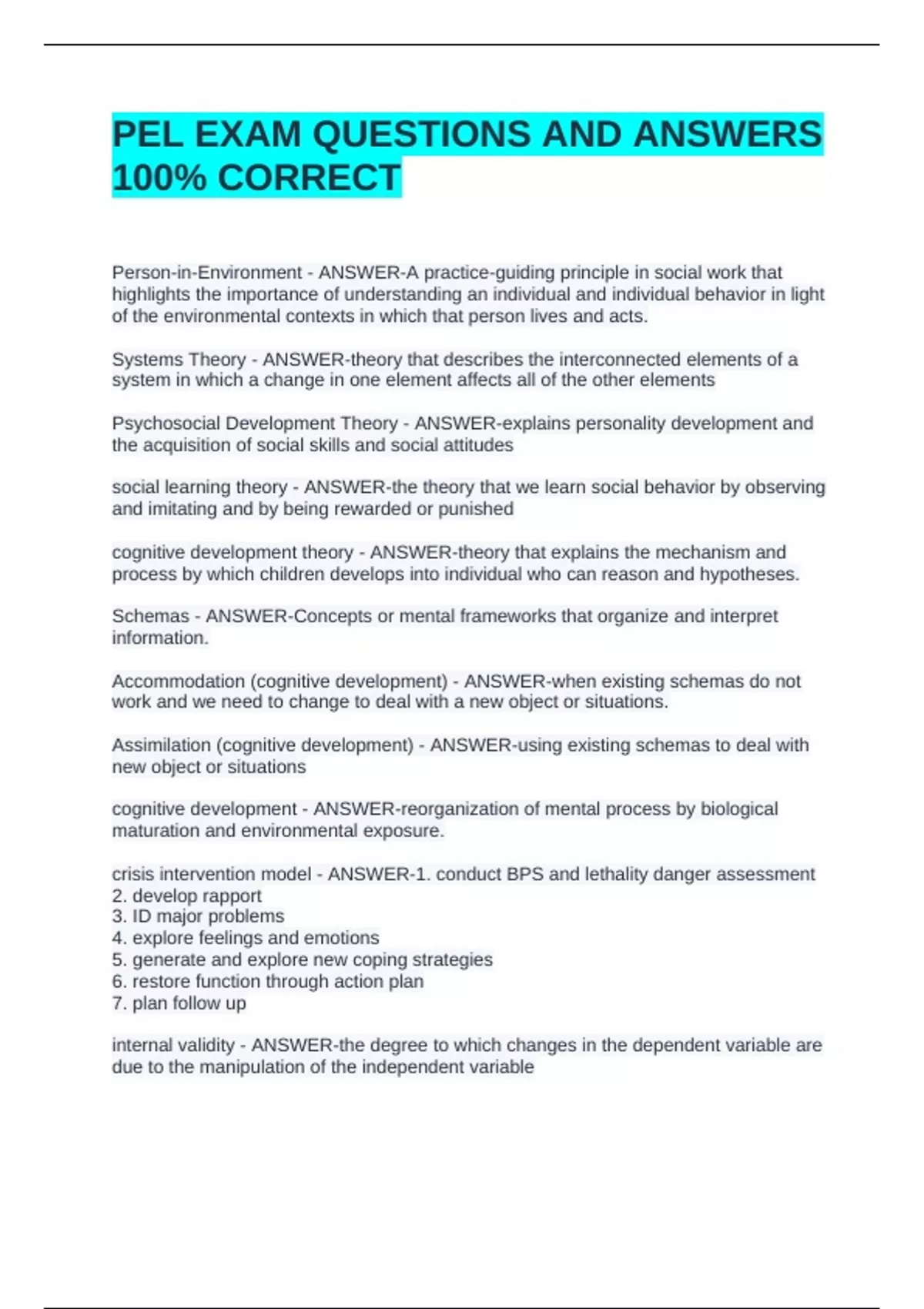 SCHOOL SOCIAL WORK PEL EXAM STUDY BUNDLE (PCKAGE DEAL) WITH COMPLETE SOLUTIONS!!